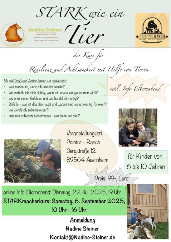 Das alles und noch viel mehr erlernen wir spielerisch mit viel Action und Spaß und bei Unterstützung durch die unterschiedlichsten Tiere.